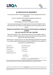 According to the PED our customers may directly download the neccessary declarations of conformity. Please use this free service, because declarations which are manually requested and issued by us must be charged.